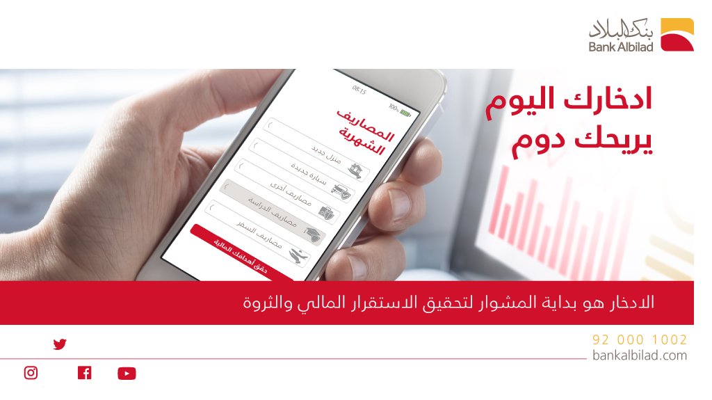 حساب البلاد هو أفضل حساب ادخار لتحقيق هذا وأكثر حيث يتيح بنك البلاد الحصول على حساب البلاد لادخار واستثمار المال إما بالريال السعودي أو بالدولار الأمريكي والحصول على عوائد شهرية مع التمتع بحرية إدارة الحساب. مزايا حساب البلاد بعوائد شهرية من بنك البلاد داخل المملكة العربية السعودية. العدد المتبقي لفتح الحسابات الجديدة. بنك البلاد عنده نظام المشاركه بمبلغ لا يقل عن 25 الف ريال.