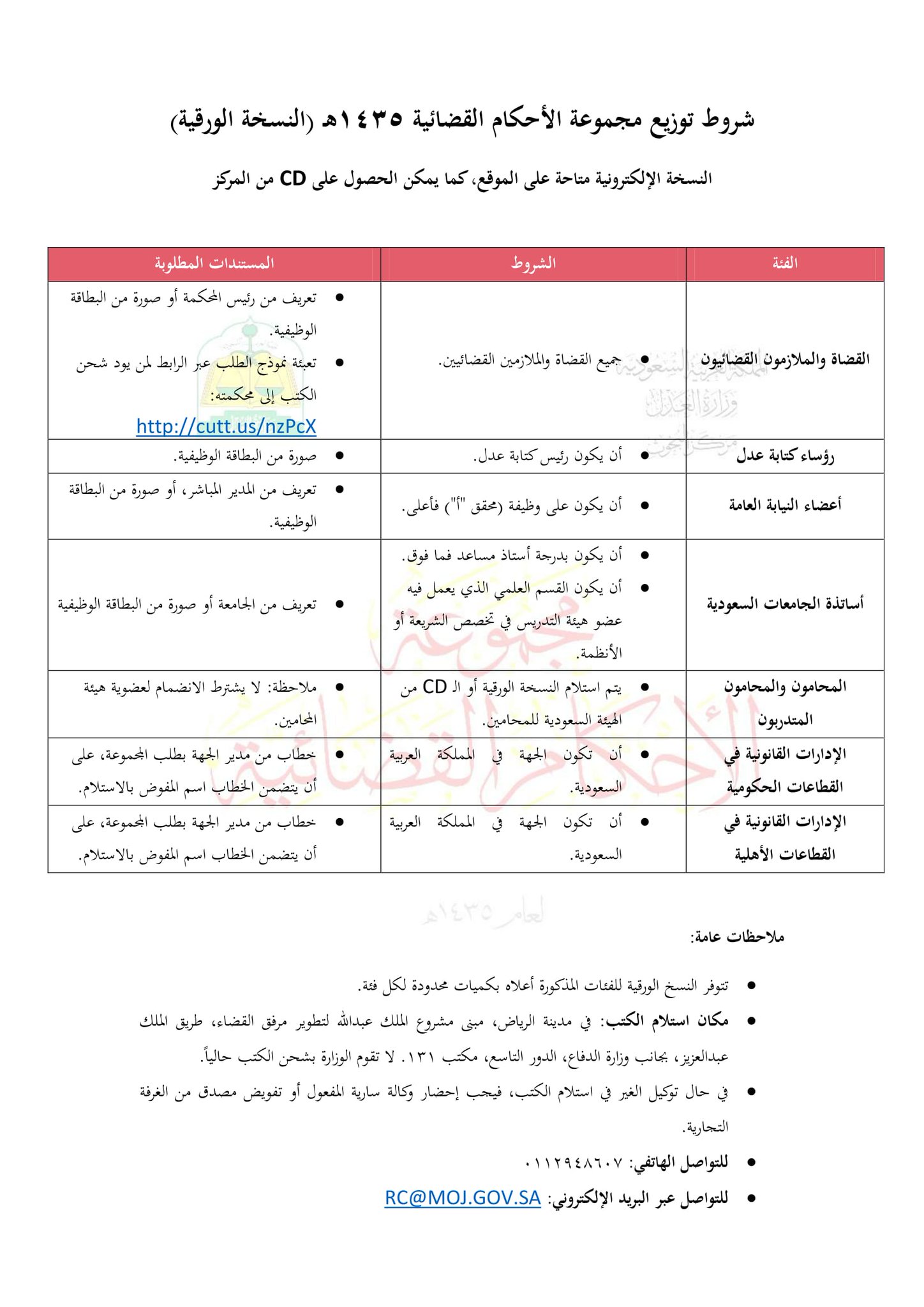 Minsitry of justice united arab emirates وزارة العدل الإمارات العربية المتحدة. وزارة العدل السعودية وزارة العدل الأنظمة و اللوائح التنفيذية مجموعة الأحكام القضائية لعام 1435 هــ مجموعة الأحكام القضائية لعام 1435 هــ. مكانة الحجاج في صياغة الأحكام القضائية. أصدرت وزارة العدل مجموعة الأحكام القضائية لعام 1434ه والتي جاءت في ثلاثين مجلدا مشتملة على أكثر من 1200 حكم حيث ركزت وزارة العدل في هذه المجموعة على حيثيات الأحكام والمخرجات القضائية الشرعية ودور القضاء في ترسية.