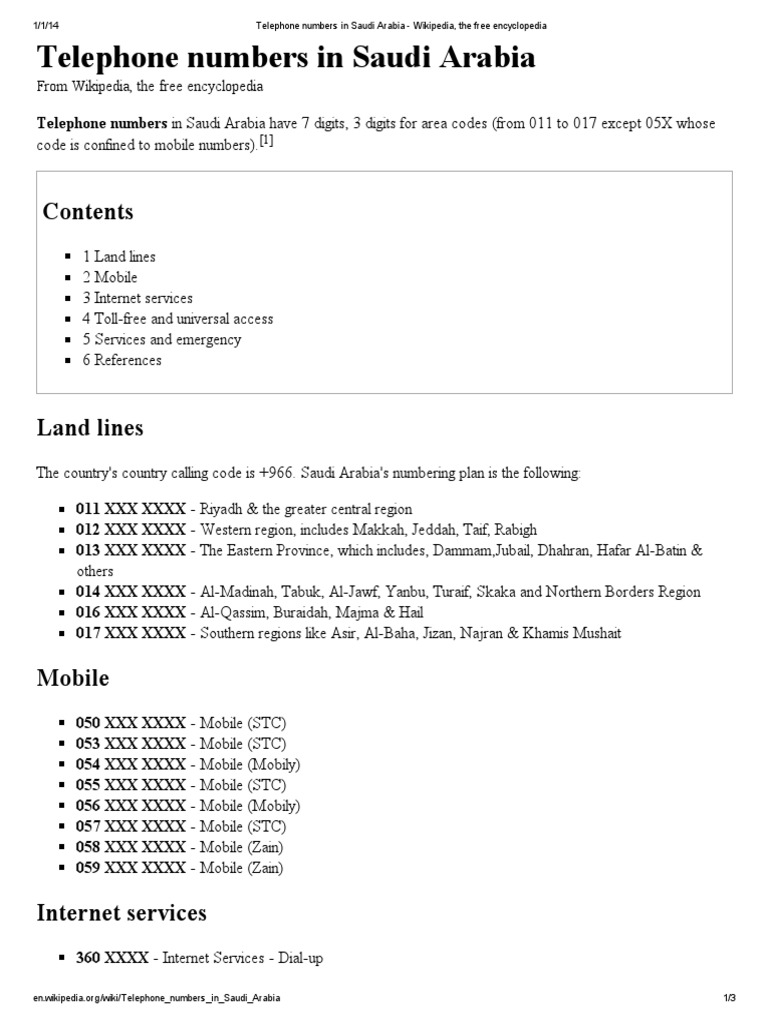 014 xxx xxxx al madinah tabuk al jawf yanbu. Then dial the area code 1 digit please see a sample calling code list below and finally the phone number 7 digits. First page 1 last page area codes 1 18 of 18. Next dial 966 the country code for saudi arabia.